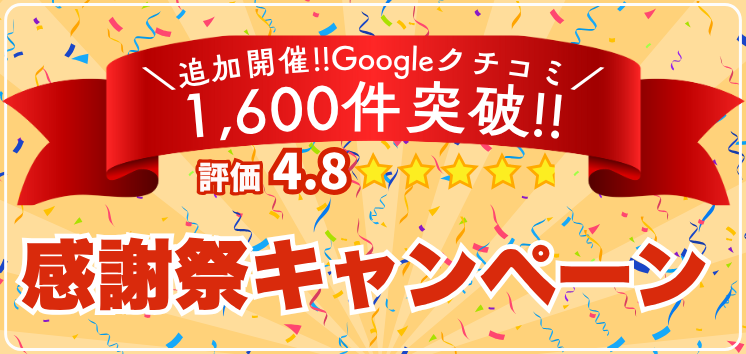 第2弾!!Googleクチコミ1,600件突破!【評価4.8】感謝祭キャンペーン!